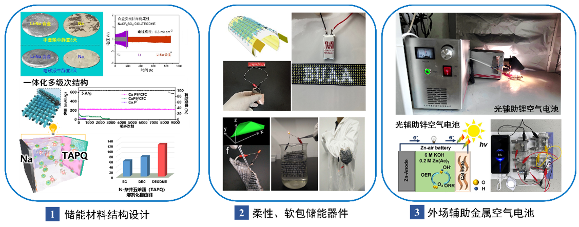 研究2:储能技术,由张瑜教授负责,主要包括电池组装及测试、储能材料合成及高温热处理等三个部分。主要围绕金属空气电池相关材料,包括电极材料、催化剂、电解液等,进行设计合成和系统表征,并从组分和结构设计角度出发,结和主动学习策略,优化电极材料及电解质配方,结合理论计算和实验验证,最终实现材料的反向设计,加速高比能金属空气电池研发进程和专利转化运用。