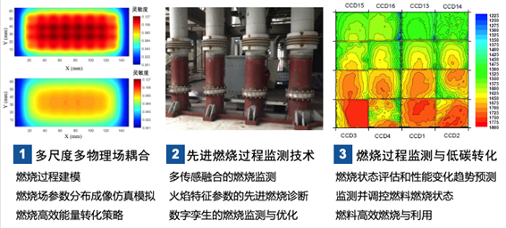 研究1:化石能源/生物质高效低碳转化中的先进测量技术,重点围绕面向化石能源/生物质高效低碳转化的燃烧过程多尺度多物理场耦合方法、先进燃烧过程监测技术、燃烧过程监测与低碳转化等开展研究。