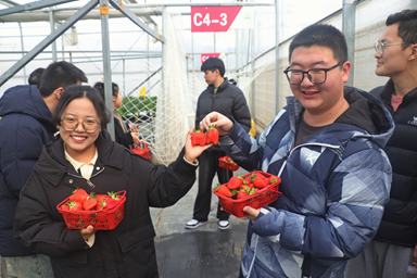在瓶窑镇党建办的组织安排下,能源测量与碳计量课题组的师生们于2025年1月11日前往彭工数字农场开展团建活动,参观了结合现代科技与自然生态的草莓种植园,并参与了草莓采摘活动。